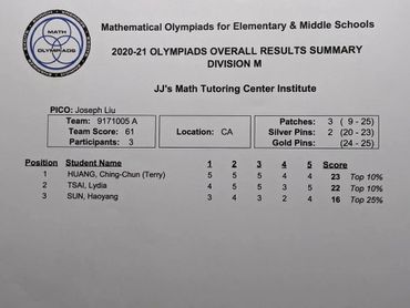 JJ'SMath Tutoring Center provides various courses from 4th-grade math to Calculus. We also train students to excel in challenging math competitions, including different levels of Math Olympiads (MOEMS) and American Mathematics Competitions (AMC). We help students to master math concepts and skills so they will be well prepared for science or engineering-related majors in prestigious universities.